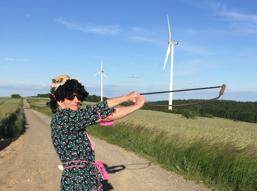 Rothilda von Rotortod: For me, this is simply an image of the strangeness I feel when I look at the wind turbines. A strangeness towards the landscape, which is changing its face from day to day and degenerating more and more into a mere site for industrial plants. But also a strangeness towards those who are driving this change; who have no sense of the alienation from nature that they are causing.