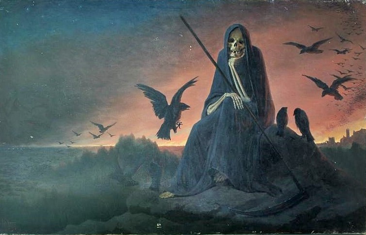Bild: Pawel Karlowitsch Wenig: Müde! Der Tod, auf dem Schlachtfeld sitzend (1915); Abbildung auf einer Feldpostkarte aus dem Jahr 1916; Taganrog, Staatliches Museum für Literatur, Geschichte und Architektur (Wikimedia commons)