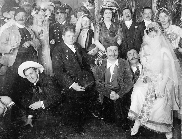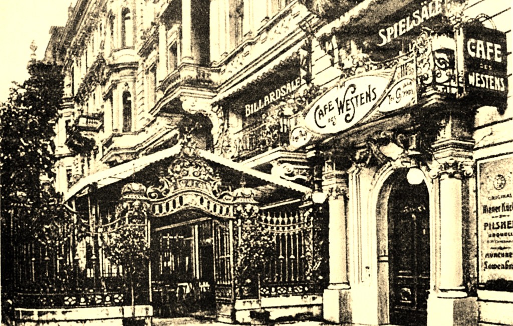 Bilder: Claire Waldoff in der Operette Drei alte Schachteln von Walter Kollo; Libretto: Hermann Haller; Liedtexte: Fritz Oliven (Künstlername „Rideamus“); (Bundesarchiv / Wikimedia commons); Das Berliner Café des Westens im Jahr 1900; aus: Metzger, Karl-Heinz / Dunker, Ulrich: Der Kurfürstendamm, Berlin 1986: Konopka (Wikimedia commons); László Moholy-Nagy (1895 – 1946): Cover zu Erwin Piscators Buch Das politische Theater, 1929 (Wikimedia commons)