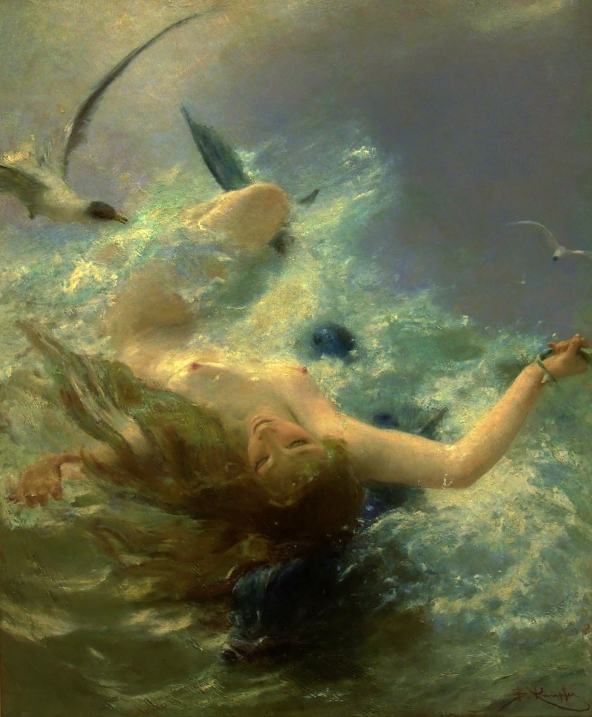 Die trauernde Wassermutter, deren Blick sich trübt und deren Kräfte schwinden – an was lässt uns das Bild denken?